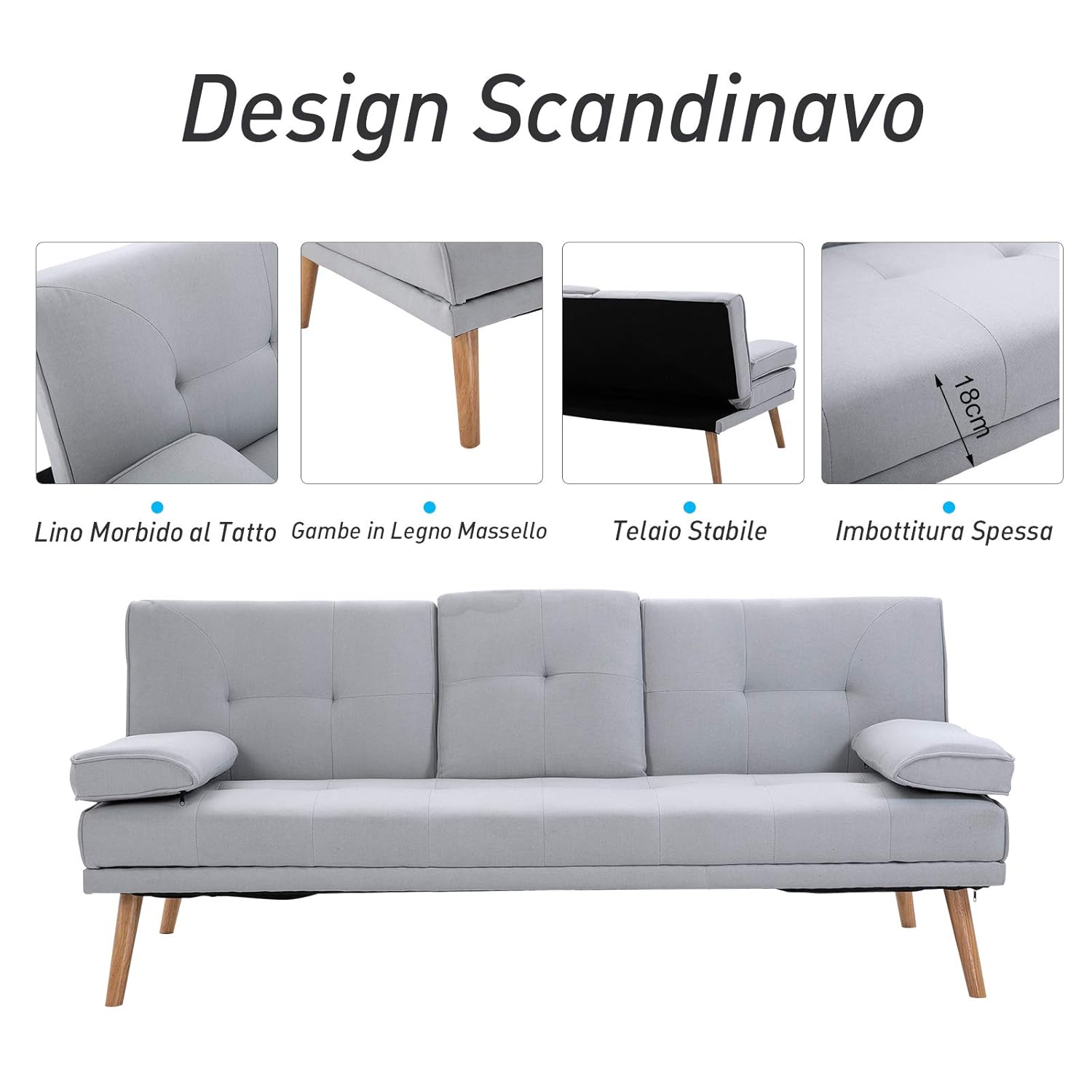 Homcom divano letto 3 posti design scandinavo reclinabile 2 braccioli staccabili con tappetino antiscivolo rivestito in lino gambe in legno massello tavolino a ribalta grigio 3,5 su 5 stelle 9 229,95 € 229,95 € 245,95 € 245,95€